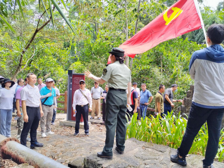 隨后,老園長為全體黨員上了一趟生動的“主題黨課”,講述了瓊崖革命紅旗不倒的光榮歷史?!按蟮貫榇?,野菜為糧,馮白駒帶領紅軍在母瑞山堅持8個多月艱苦卓絕的斗爭,保存了革命的火種,支撐著瓊崖革命紅旗……”瓊崖縱隊在艱苦卓絕的斗爭中表現(xiàn)出的革命精神,令黨員們?yōu)橹畡尤?,肅然起敬。
