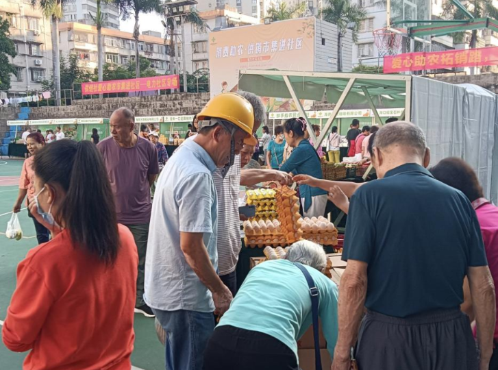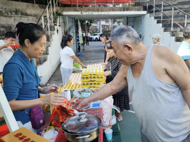 11月4日上午,熱鬧、紅火的“趕大集”場(chǎng)景在??谑旋埲A區(qū)電力社區(qū)籃球場(chǎng)上呈現(xiàn),本地應(yīng)季蔬菜、演豐咸水鴨、咸鴨蛋、老姜紅糖、大坡胡椒、黑豬肉干、野生蜂蜜等特色農(nóng)產(chǎn)品琳瑯滿目,一大早就讓整個(gè)電力社區(qū)充滿了“煙火氣”。