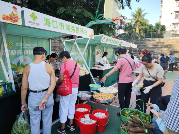 這一幕幕熱鬧的場(chǎng)景,來自于由海南省供銷合作聯(lián)社指導(dǎo),??谑泄╀N合作社聯(lián)合社主辦的“消費(fèi)助農(nóng)·供銷市集”進(jìn)社區(qū)活動(dòng)——電力社區(qū)專場(chǎng)。