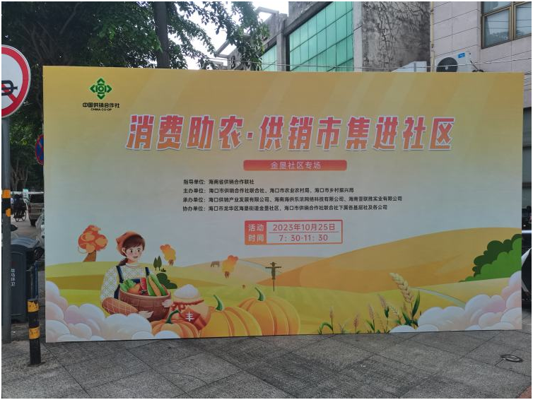 根據(jù)《海南省供銷合作社聯(lián)社關(guān)于持續(xù)做好2023年消費幫扶和農(nóng)產(chǎn)品運銷工作的通知》(瓊供﹝2023﹞6號)的通知要求,為貫徹落實今年中央一號文件、省第八次黨代會和省委農(nóng)村工作會議精神,引導(dǎo)社會各界和各類市場主體參與消費幫扶工作,豐富消費助農(nóng)新業(yè)態(tài),拓展消費助農(nóng)新模式,2023年10月25日,由省供銷合作聯(lián)社指導(dǎo),??谑泄╀N合作社聯(lián)合社、??谑修r(nóng)業(yè)農(nóng)村局和海口市鄉(xiāng)村振興局主辦,??诠╀N產(chǎn)業(yè)發(fā)展有限、海南海供樂農(nóng)網(wǎng)絡(luò)科技有限公司、海南壹聯(lián)盛實業(yè)有限公司承辦的“消費助農(nóng)·供銷市集”進社區(qū)活動—金墾社區(qū)專場開市啦!