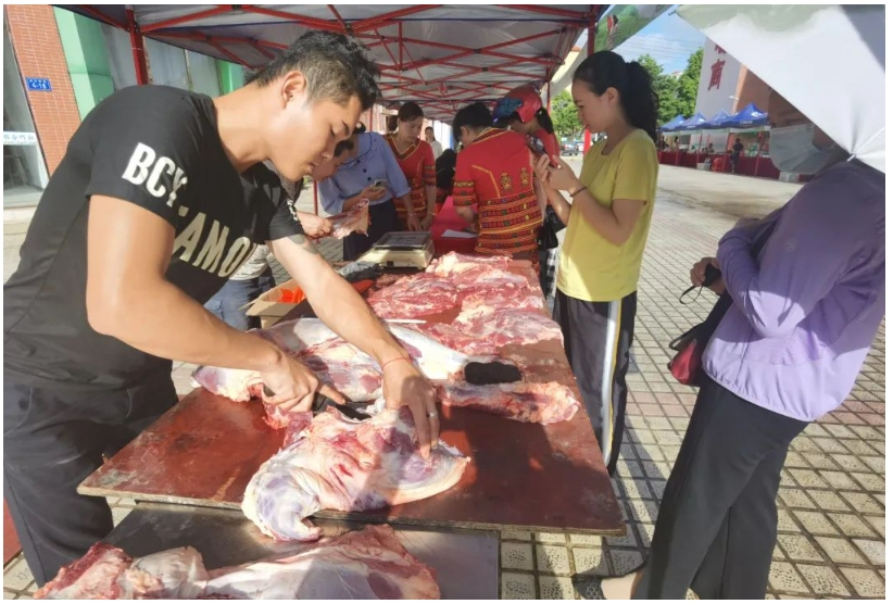 “幫我切一下這一塊牛肉”,“幫我稱十斤橙子”,“再幫我稱多些地瓜”不少市民群眾、職工干部都在踴躍購(gòu)買。在到場(chǎng)消費(fèi)者的大力支持下,現(xiàn)場(chǎng)銷售額共達(dá)5萬余元,促進(jìn)了農(nóng)戶增收。