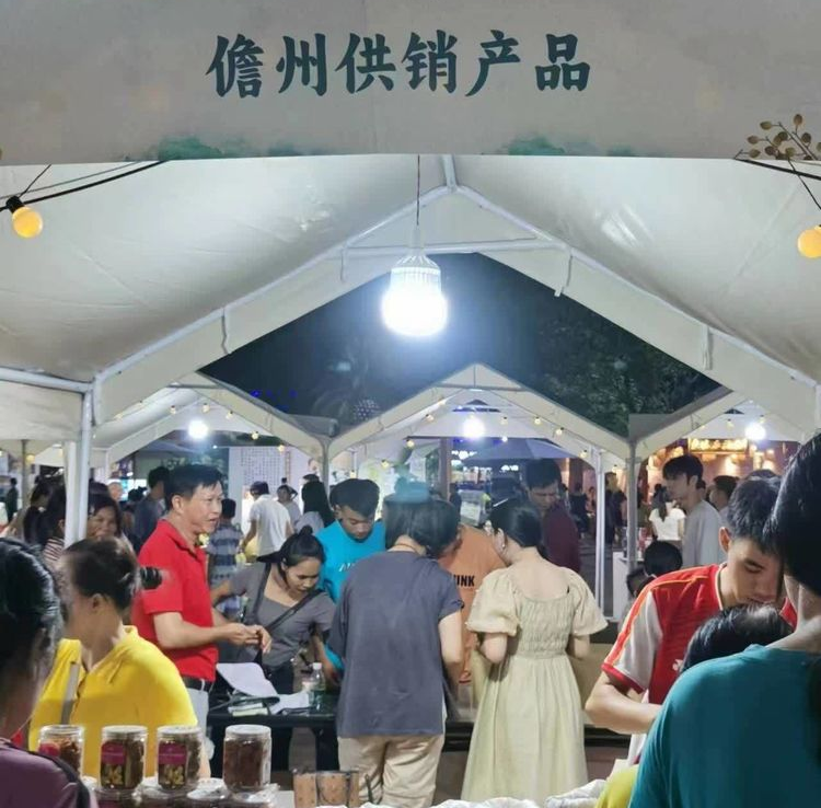 開幕式現(xiàn)場熱鬧非凡,攤位上擺放著東坡餅、黃皮干、牛肉干、紅米、香蕉等儋州本地特色農(nóng)產(chǎn)品,吸引了廣大群眾紛紛前來購買。