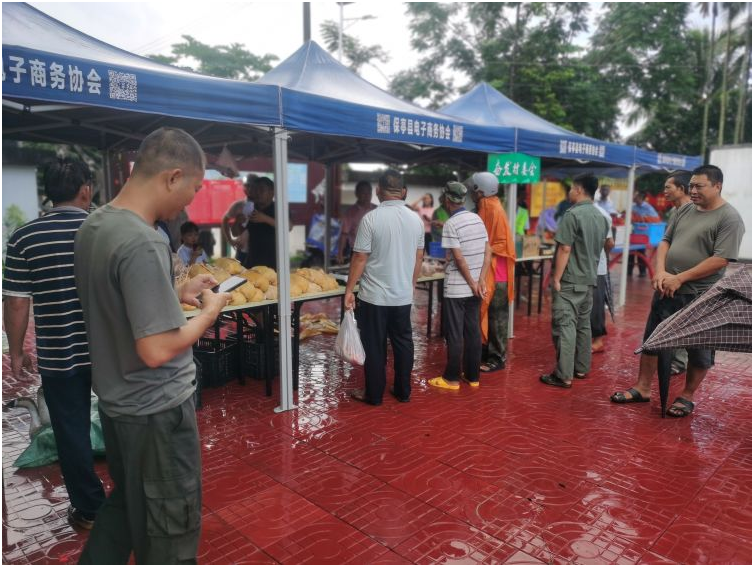 7月21日上午,保亭縣消費助農(nóng)集市六弓鄉(xiāng)專場活動在六弓鄉(xiāng)政府辦公大樓前熱鬧開市?,F(xiàn)場共組織了20個攤位進行農(nóng)產(chǎn)品展銷,全鄉(xiāng)8個定點幫扶單位的干部職工積極踴躍參與采購農(nóng)副產(chǎn)品,現(xiàn)場銷售額3.14萬元,以購代捐,以買代幫,消費助農(nóng)。