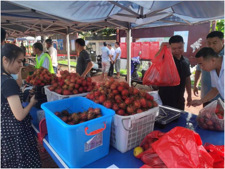 經(jīng)過周密的部署和精心的組織,當天共有2家農(nóng)民合作社,9名脫貧戶和9名農(nóng)戶組織了六弓鵝、小母雞、黃牛肉、羊肉、紅毛丹、百香果、龍眼等19種特色農(nóng)產(chǎn)品參加現(xiàn)場的銷售。