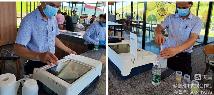 活動(dòng)現(xiàn)場(chǎng),由市農(nóng)業(yè)農(nóng)村局的工作人員在現(xiàn)場(chǎng)抽檢各個(gè)展銷方的農(nóng)副產(chǎn)品,利用檢測(cè)儀器對(duì)產(chǎn)品進(jìn)行檢測(cè)分析,保障產(chǎn)品的品質(zhì)安全,讓大家對(duì)本次展銷產(chǎn)品放心、安心,對(duì)農(nóng)副產(chǎn)品有信心。