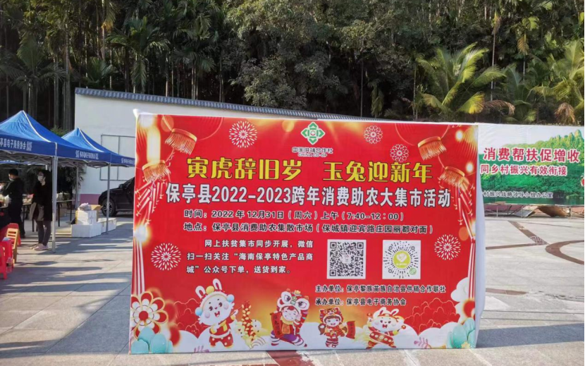 2022年12月31日,保亭縣消費(fèi)助農(nóng)大集市活動(dòng)在莊園麗都集市舉行,廣泛動(dòng)員廣大黨員干部職工以及愛心企業(yè)、愛心人士和廣大干部群眾參與現(xiàn)場(chǎng)認(rèn)購(gòu)或線上采購(gòu),通過“以購(gòu)代捐”、“以買代幫”的方式,消費(fèi)幫扶助農(nóng)增收。