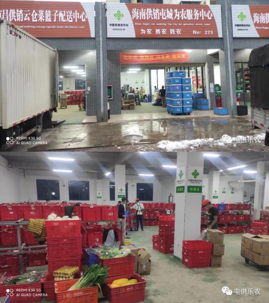 (圖為海南供銷屯昌農(nóng)產(chǎn)品集散中心作業(yè)現(xiàn)場,分揀與配送來自覆蓋縣 鎮(zhèn) 村三級的屯昌縣鄉(xiāng)村振興供銷驛站服務(wù)網(wǎng)點每日線上訂單)
