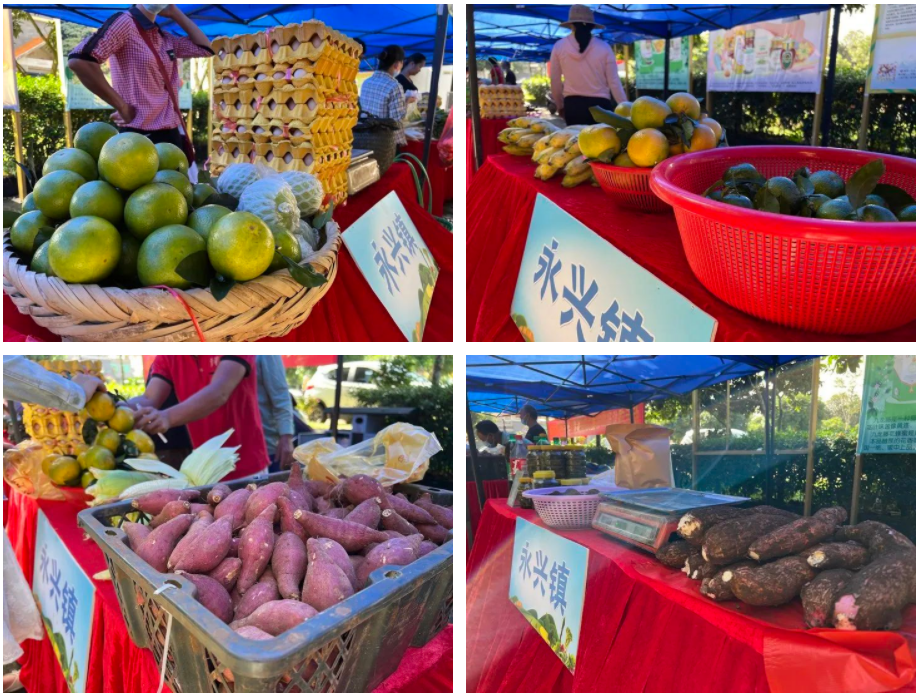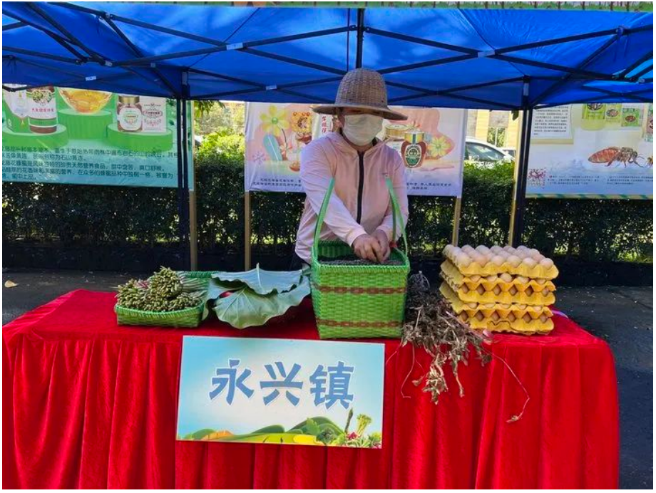 數(shù)十名永興、石山和東山的脫貧鞏固戶和監(jiān)測對象帶著自家的蔬菜水果雞蛋等展銷,健康又實惠。