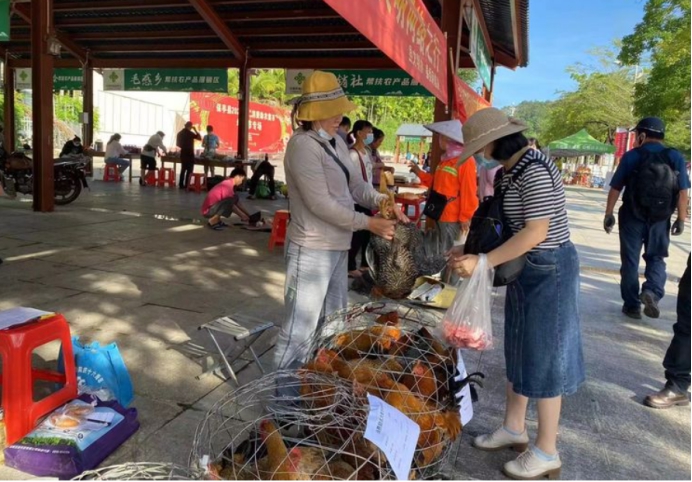 本次活動共有21家脫貧戶和10家合作社(帶貧益貧企業(yè))組織了牛肉、什玲雞、毛感鴨、五腳豬、荔枝、南瓜等86種優(yōu)質(zhì)農(nóng)特產(chǎn)品參加消費助農(nóng)大集市活動。各色產(chǎn)品琳瑯滿目,村民們帶著自家養(yǎng)殖的雞、鴨、鵝,種植的荔枝、自釀的蜂蜜和采摘的野生靈芝等產(chǎn)品到集市售賣。各單位幫扶聯(lián)系人和社會各界愛心人士積極參與消費助農(nóng)。通過“以購代捐”“以買代幫”等消費助農(nóng)方式促進我縣幫扶農(nóng)產(chǎn)品銷售,當天活動現(xiàn)場銷售額43001.4元,累計惠及脫貧戶612戶次。