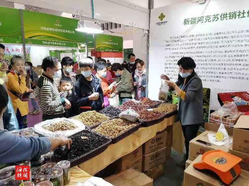 在安徽省供銷社展區(qū),來自安徽省合肥市長(zhǎng)豐縣的張劍說,在供銷合作社帶動(dòng)下,他們組建了杜崗情瓜簍種植專業(yè)合作社,構(gòu)建集電商、金融、養(yǎng)老、就業(yè)等服務(wù)內(nèi)容為一體的綜合性幫扶示范服務(wù)點(diǎn),為周邊群眾提供65個(gè)就業(yè)崗位,其中有37個(gè)脫貧戶,還協(xié)助有創(chuàng)業(yè)意向的脫貧戶辦理貸款28萬元?!斑@次帶來的葡萄、稻蝦米等幫扶產(chǎn)品銷售不錯(cuò),海口市民買得比較多。”張劍說道。