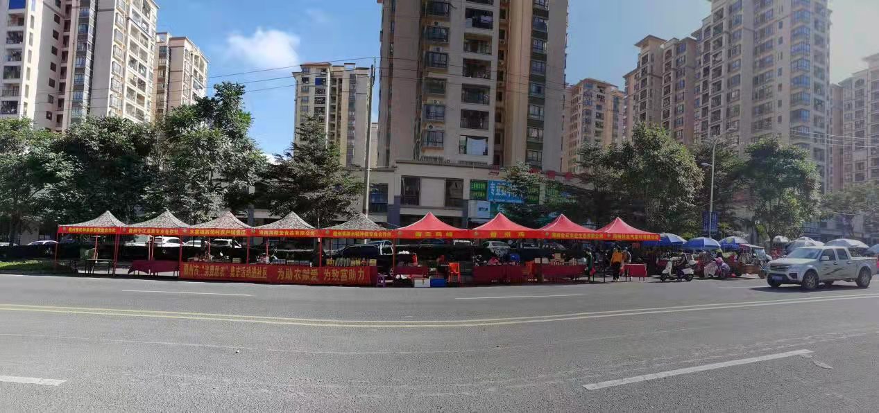 11月19日至28日,儋州市“消費助農(nóng)集市進社區(qū)”九場系列活動先后在水岸明都二期社區(qū)、佳華小區(qū)拉等九個大型社區(qū)順利舉辦,儋州蓬虹互聯(lián)網(wǎng)平臺有限責任公司等7家公司和2戶農(nóng)戶帶來了本地的地瓜、東坡紅米、紅魚、綠橙、蝎子酒、小白菜、菜心、芥菜、芹菜、蒜苗、生菜、白蘿卜等60多種農(nóng)副產(chǎn)品,活動現(xiàn)場熱鬧非凡,尤其是新鮮且純天然的農(nóng)副產(chǎn)品深受群眾歡迎。據(jù)統(tǒng)計,九場系列活動現(xiàn)場銷售額17.6萬元,訂單5萬元,受益農(nóng)戶共800多戶次。