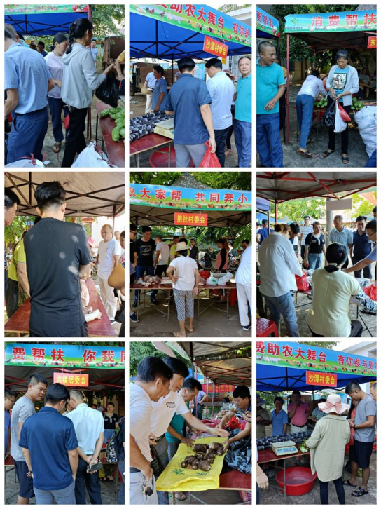 活動(dòng)現(xiàn)場,一大早來自上村的鴿子,武鬧的土雞、老鴨,羅堂的閹雞,博賢的黑山羊肉、芒果、水果筍,沙潭的甜蜜甘蔗,隆道的沙土花生,東春的芋頭,沿海各村的新鮮魚、螃蟹以及網(wǎng)紅小魚干、魷魚干等特色農(nóng)產(chǎn)品擺滿了大院。機(jī)關(guān)黨員干部紛紛帶頭響應(yīng)號召,來到展銷攤位上現(xiàn)場選購,掀起了消費(fèi)助農(nóng)的高潮。