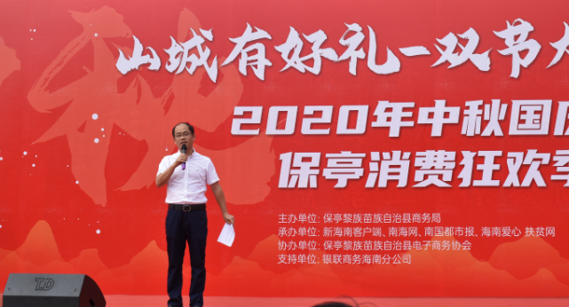 山城有好禮-雙節(jié)大放‘價’,9月28日,保亭縣在麗都莊園扶貧集市現(xiàn)場啟動2020年中秋國慶節(jié)消費狂歡季活動,掀起第二場“消費扶貧月 愛心扶貧大集市”熱潮。