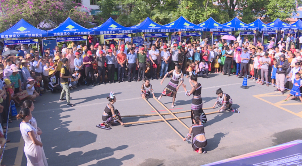 集市上,主辦方還設(shè)置趣味活動(dòng)區(qū),舉行跳竹竿舞、大米挑挑挑、黃豆大作戰(zhàn)、玉米剝剝樂等活動(dòng),將集市的活動(dòng)氛圍推向高潮。