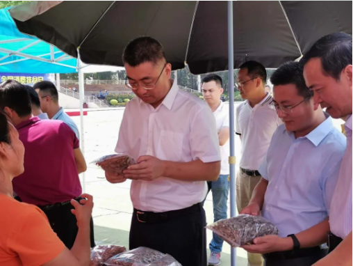 縣長黃文聰了解扶貧產(chǎn)品生產(chǎn)銷售情況并帶頭購買扶貧戶產(chǎn)品