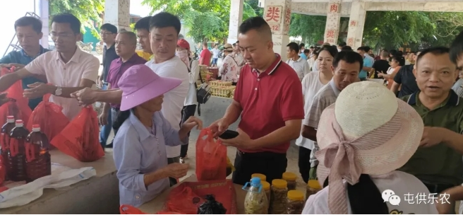 8月15日上午,由屯昌縣供銷合作聯(lián)社、縣扶貧辦、縣農(nóng)業(yè)農(nóng)村局、新興鎮(zhèn)黨委和政府聯(lián)合共同舉辦的屯昌縣“愛(ài)心扶貧大集市”新興鎮(zhèn)專場(chǎng)活動(dòng)隆重開(kāi)市。上午8點(diǎn)半舉行開(kāi)幕儀式,新興鎮(zhèn)黨委書記陳柏全、新興鎮(zhèn)人大主席王明昊、縣供銷合作聯(lián)社主任符文雄、新興鎮(zhèn)黨委副書記、鎮(zhèn)長(zhǎng)龐新宇、縣農(nóng)業(yè)農(nóng)村局潘夢(mèng)怡副局長(zhǎng)出席開(kāi)幕儀式,新興鎮(zhèn)黨委副書記、鎮(zhèn)長(zhǎng)龐新宇作致辭講話。各“雙聯(lián)雙扶”單位幫扶責(zé)任人和社會(huì)各界愛(ài)心人士積極參與認(rèn)購(gòu)!通過(guò)“以購(gòu)代捐”“以買代幫”等方式促進(jìn)全鎮(zhèn)扶貧農(nóng)產(chǎn)品銷售,助力我縣打贏脫貧攻堅(jiān)戰(zhàn)。