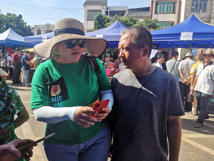 鎮(zhèn)委副書記、鄉(xiāng)村振興工作隊(duì)長吳棉和縣婦聯(lián)主席王冬嬌選購農(nóng)產(chǎn)品