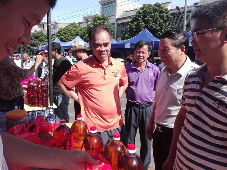 工商聯(lián)黨組書記王良文和龍門商會(huì)會(huì)長盧天法到現(xiàn)場選購農(nóng)產(chǎn)品