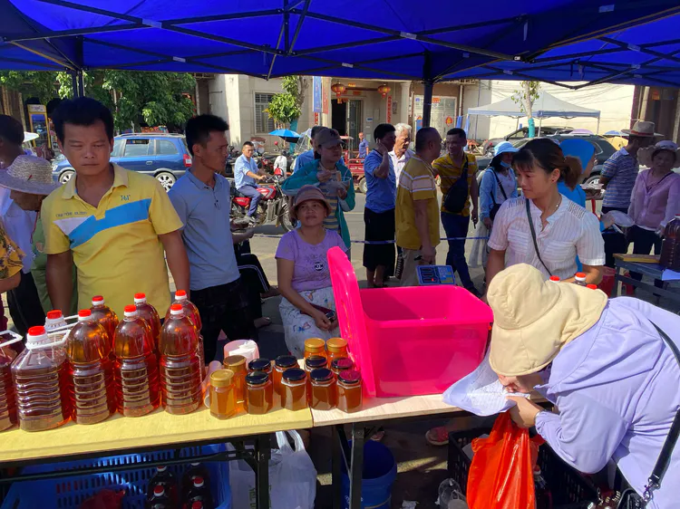 活動(dòng)開始后,現(xiàn)場農(nóng)家雞、羊肉、百香果、胡椒、花生油等扶貧農(nóng)副產(chǎn)品一字排開,令人目不暇接,叫賣聲不絕于耳。幫扶責(zé)任人、鎮(zhèn)干部、鄉(xiāng)村振興工作隊(duì)及趕早市的群眾紛紛認(rèn)真挑選農(nóng)產(chǎn)品,以實(shí)際行動(dòng)提振消費(fèi)信心,助力貧困群眾增收致富。