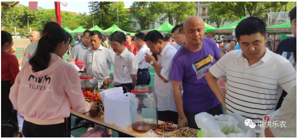 上午9點(diǎn)舉行開(kāi)幕儀式,縣政協(xié)吳云師副主席、南坤鎮(zhèn)黨委書(shū)記王剛、縣供銷合作聯(lián)社主任符文雄、南坤鎮(zhèn)政府鎮(zhèn)長(zhǎng)洪雄出席開(kāi)幕儀式,南坤鎮(zhèn)黨委書(shū)記王剛作致辭講話。通過(guò)“以購(gòu)代捐”“以買代幫”等方式促進(jìn)全鎮(zhèn)扶貧農(nóng)產(chǎn)品銷售。中共屯昌縣委常委、縣人民武裝部政委黎兆興、縣政協(xié)吳云師副主席等縣領(lǐng)導(dǎo)親臨活動(dòng)現(xiàn)場(chǎng)帶頭購(gòu)買貧困戶農(nóng)產(chǎn)品,南坤鎮(zhèn)政府干部職工、雙聯(lián)雙扶單位幫扶責(zé)任人、社會(huì)各界人士現(xiàn)場(chǎng)認(rèn)購(gòu)貧困戶農(nóng)產(chǎn)品,助力我縣打贏脫貧攻堅(jiān)戰(zhàn)。