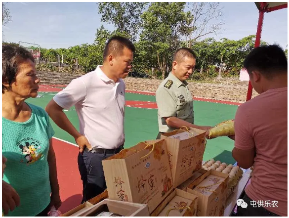 (中共屯昌縣委常委、縣人民武裝部政委黎兆興現(xiàn)場(chǎng)帶頭購(gòu)買貧困戶農(nóng)產(chǎn)品)