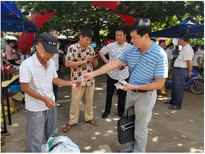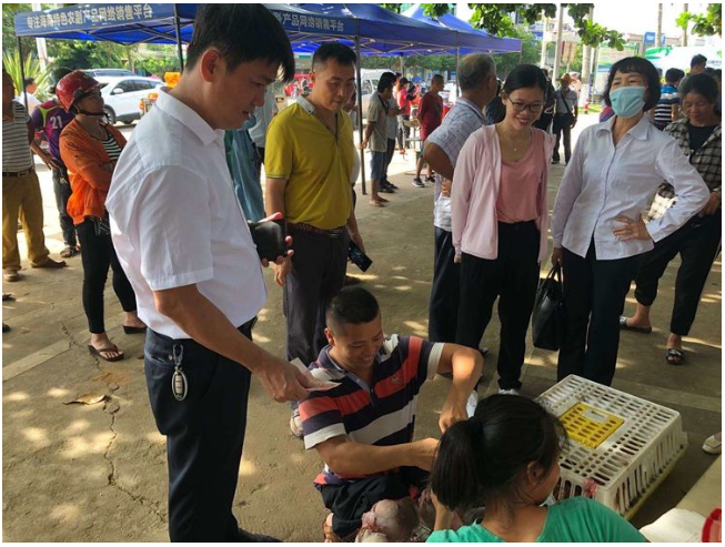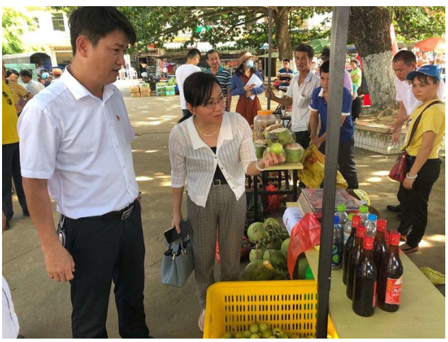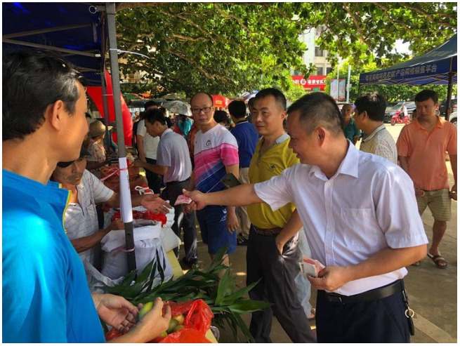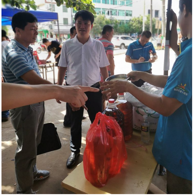 縣人大副主任、鎮(zhèn)脫貧攻堅(jiān)大隊(duì)長(zhǎng)吳清雄認(rèn)真了解產(chǎn)品銷售情況并帶頭購(gòu)買貧困戶所售農(nóng)副產(chǎn)品