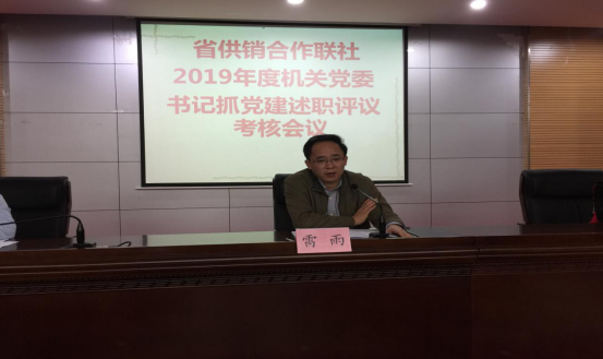 2019年12月31日,省供銷合作聯(lián)社組織召開2019年度機關(guān)黨委書記述職評議考核會議,機關(guān)及直屬(合作)企業(yè)各黨支部黨員共計39人參加會議。社黨委書記、理事會主任雷雨同志,黨委委員、理事會副主任符芳海同志,二級巡視員符捷同志出席會議。會議由機關(guān)黨委副書記李紅衛(wèi)同志主持。