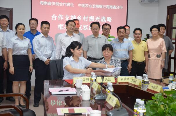 黃進強表示,長期以來,省農(nóng)發(fā)行與省供銷社都認真貫徹落實黨中央、國務(wù)院和省委、省政府關(guān)于“三農(nóng)”工作的政策方針。這次,省供銷社與省農(nóng)發(fā)行簽訂戰(zhàn)略合作協(xié)議,就是按照“助力三農(nóng)、合作共贏”的原則,為海南美麗鄉(xiāng)村建設(shè)做出努力。多年來,省供銷社與省農(nóng)發(fā)行始終保持友好務(wù)實的工作聯(lián)系,在推動供銷合作社改革發(fā)展、為農(nóng)服務(wù)體系創(chuàng)新、農(nóng)產(chǎn)品現(xiàn)代物流體系、農(nóng)村電商、三產(chǎn)融合等方面進行了新的探索,在農(nóng)業(yè)供給側(cè)結(jié)構(gòu)性改革中發(fā)揮了重要作用。省農(nóng)發(fā)行與省供銷社進一步深化戰(zhàn)略合作,是兩部門深入貫徹落實十九大會議精神,服務(wù)省委省政府美麗鄉(xiāng)村振興戰(zhàn)略,共同推動全省農(nóng)業(yè)農(nóng)村現(xiàn)代化的重大舉措,也是秉承家國情懷,服務(wù)政府戰(zhàn)略的重要體現(xiàn),相信雙方一定能夠在更廣闊的領(lǐng)域深化合作,為實現(xiàn)鄉(xiāng)村振興做出更大貢獻。